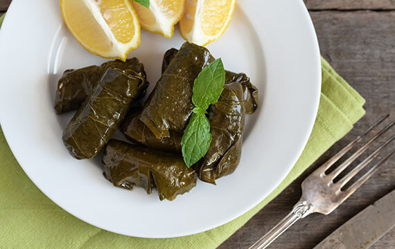 Dolma is a seasoned mix of mixed meat and vegetables such as onions, peppers, tomatoes and rice, packed into rolled up vine leaves to create a tasty treat. Omit the meat and you have a vegetarian ‘yalanci dolma’ option.