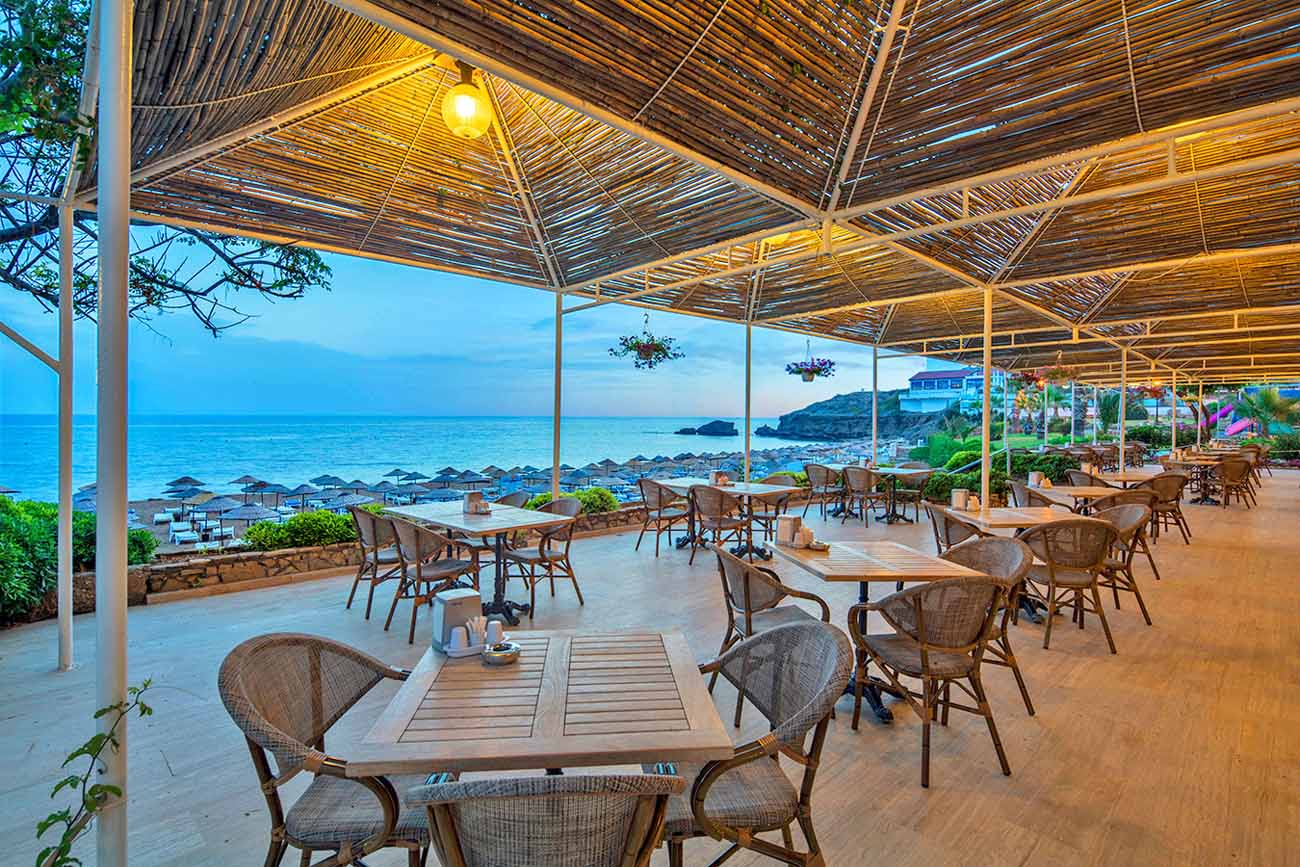 Breakfast and dinner are served as an open buffet in the Sunset Restaurant, overlooking the picturesque bay. Enjoy a diverse selection of culinary delights made from fresh, local ingredients, offering both traditional and international flavours in a relaxed setting. As the sun sets, sip on a glass of wine while taking in the restaurant’s unforgettable sunset views, renowned as some of the best on the island!