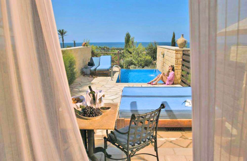 The Byzantine influence is clearly illustrated in Elysium’s architecture with warm hued wood, marble and sun-kissed stones featured in the colonnades, archways and intricate mosaics. Charming and well informed staff greet every guest with a warm Cypriot welcome and are happy to share their wealth of local knowledge.