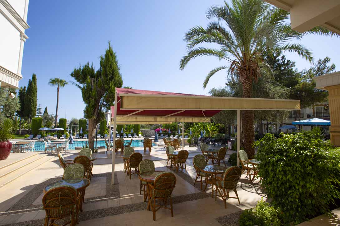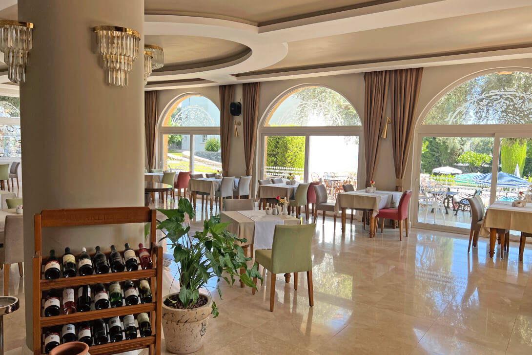 The Armonia Restaurant in the main hotel building, serves an open buffet breakfast and for evening meals, an open buffet meze and choice of main courses from a set menu. In summer, the pool bars serve snacks and drinks.