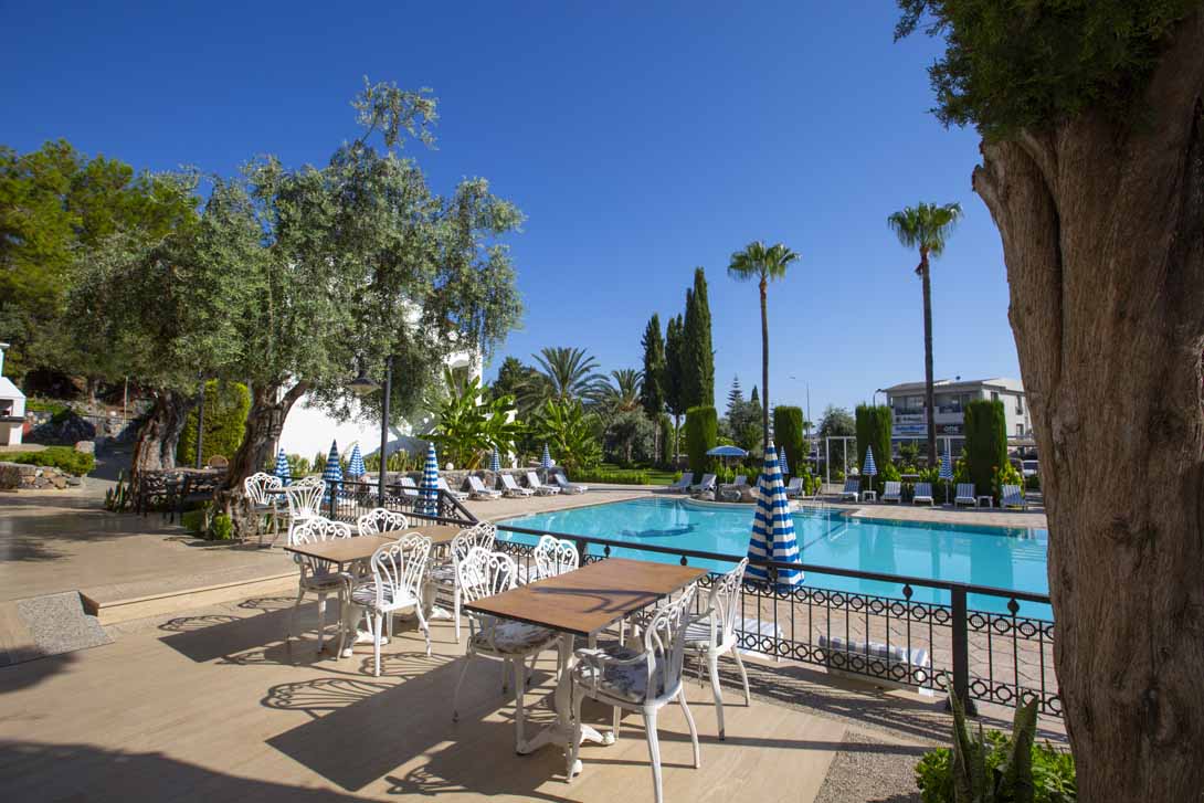 During the high season, and depending on occupancy, the hotel often hosts Turkish Cypriot nights and barbecues with live music. Just 5 minutes away, Bellapais Abbey enchants visitors with its Gothic ruins and sweeping views. Within 10 minutes, you can explore Kyrenia Harbour and Castle, the island’s most popular hub for waterfront dining, boat trips, and historic sights.