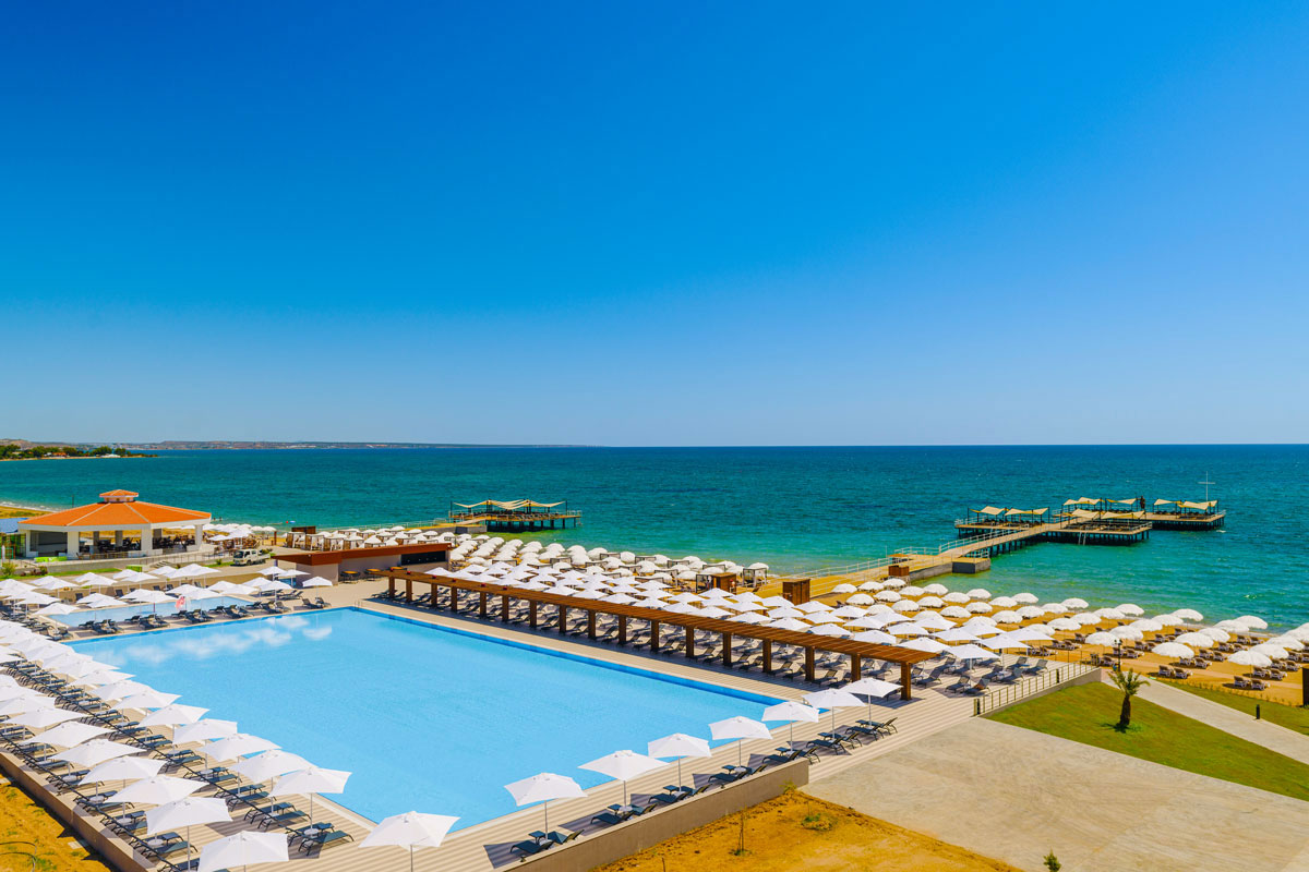 The pristine Iskele shoreline is home to the five-star Arkin Iskele Hotel. Magnificent freshwater pools are scattered around the site on an open terrace, where you may cool off in peace and quiet while admiring the stunning views of the Mediterranean Sea.