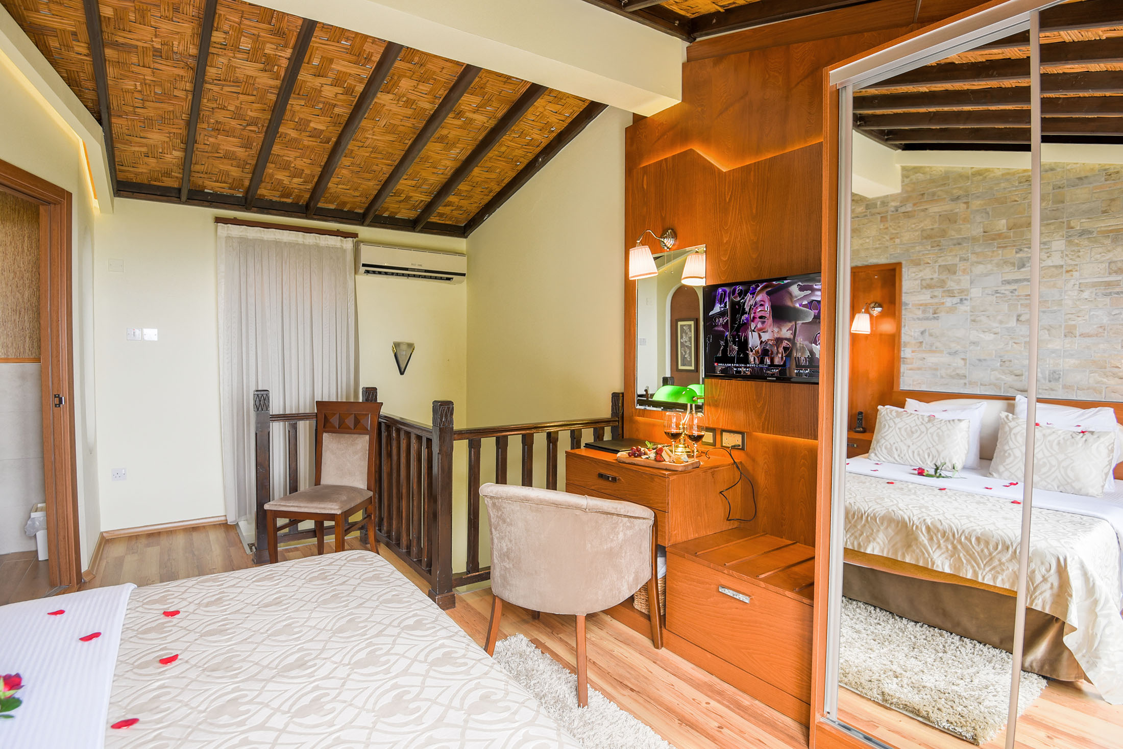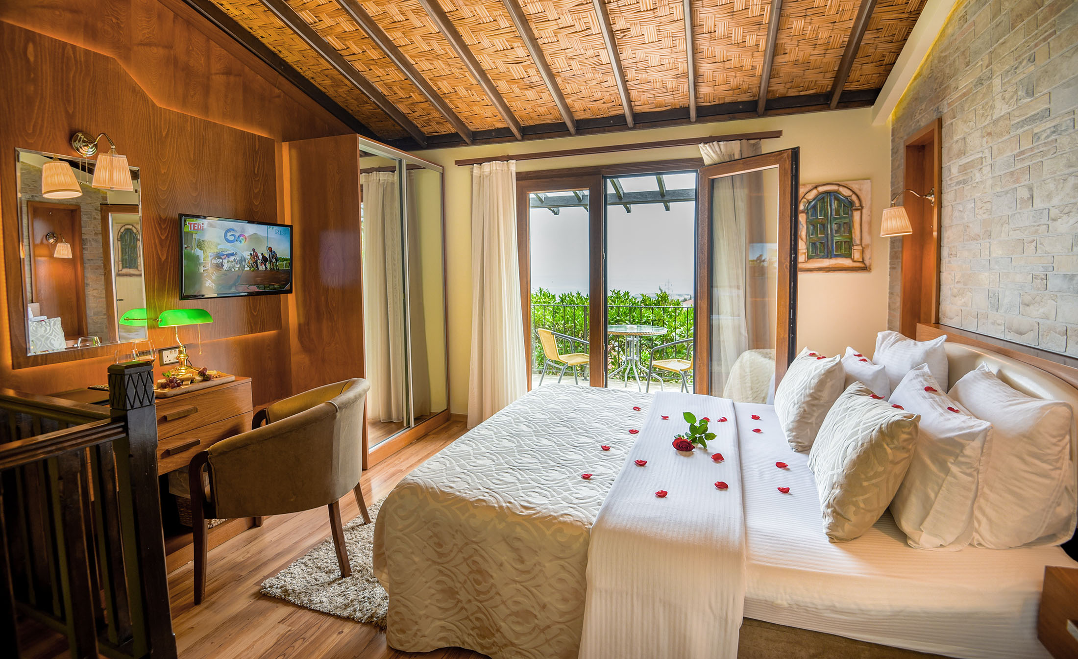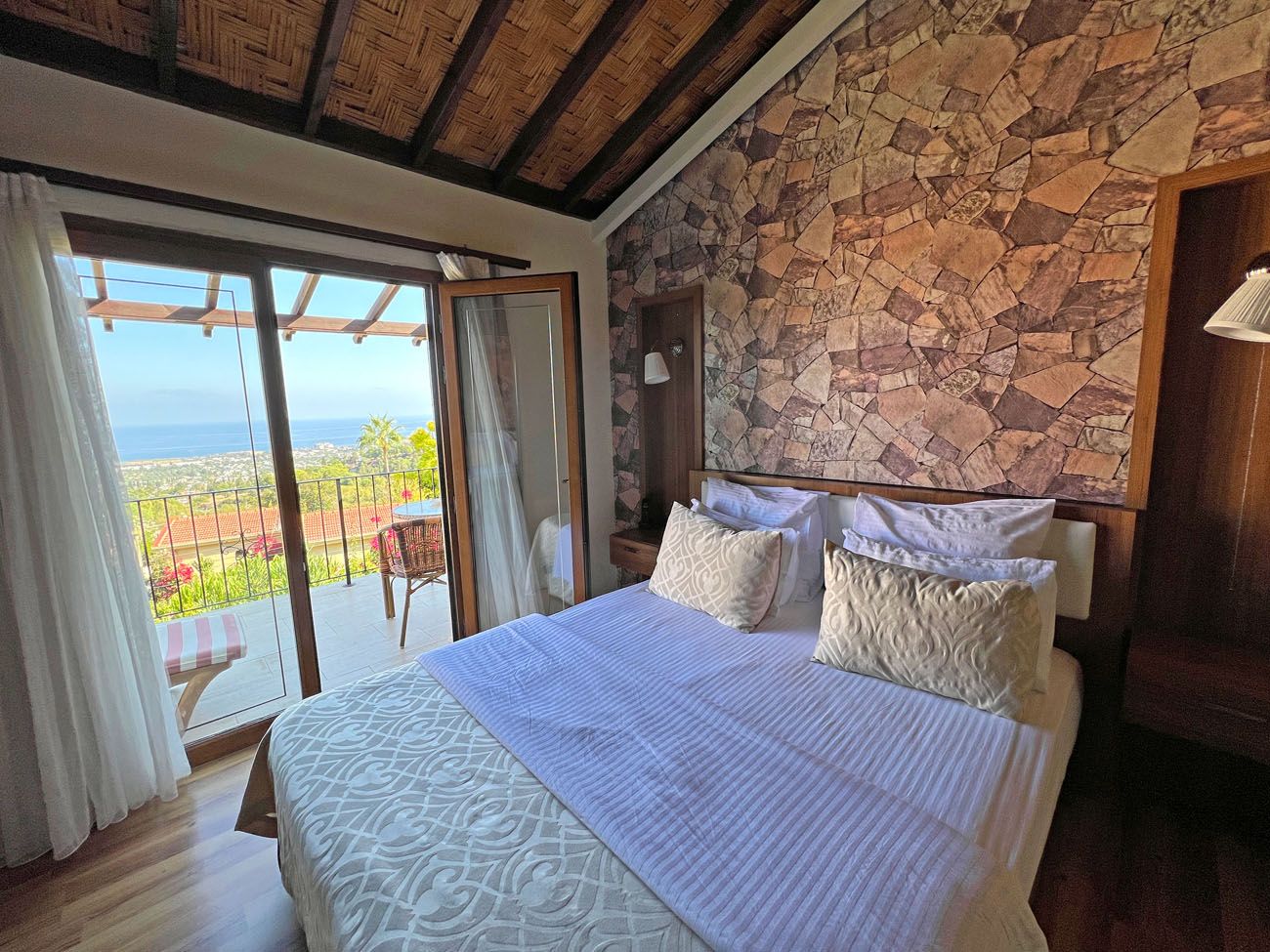 Overlooked by exotic palm trees and surrounded by lush gardens, and the Bellapais Abbey, their pristine pool offers sensational views of the Abbey, mountains, and sea whilst swimming, and their poolside terrace allows guests to lie back in history and relax in the Mediterranean sun. There is also a cosy poolside bar, where guests can savour refreshing drinks while enjoying a stunning sea view.