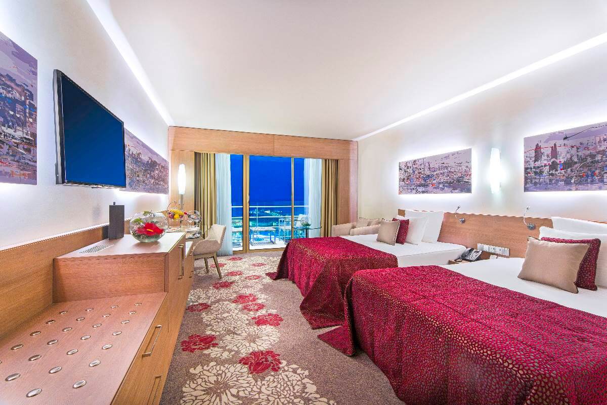 Boasting a beautiful beachfront location amidst the rural unspoilt scenery of North Cyprus, this extravagant resort offers an abundance of opulent facilities and accommodation in an exotic and peaceful atmosphere. Impressive throughout with classy modern décor and endless tropical gardens surrounding glamorous pools, thrilling activities from water gymnastics to amphitheatre shows and a fantastic Kids Club… it’s discerning guests of all ages can expect to be spoilt for choice!