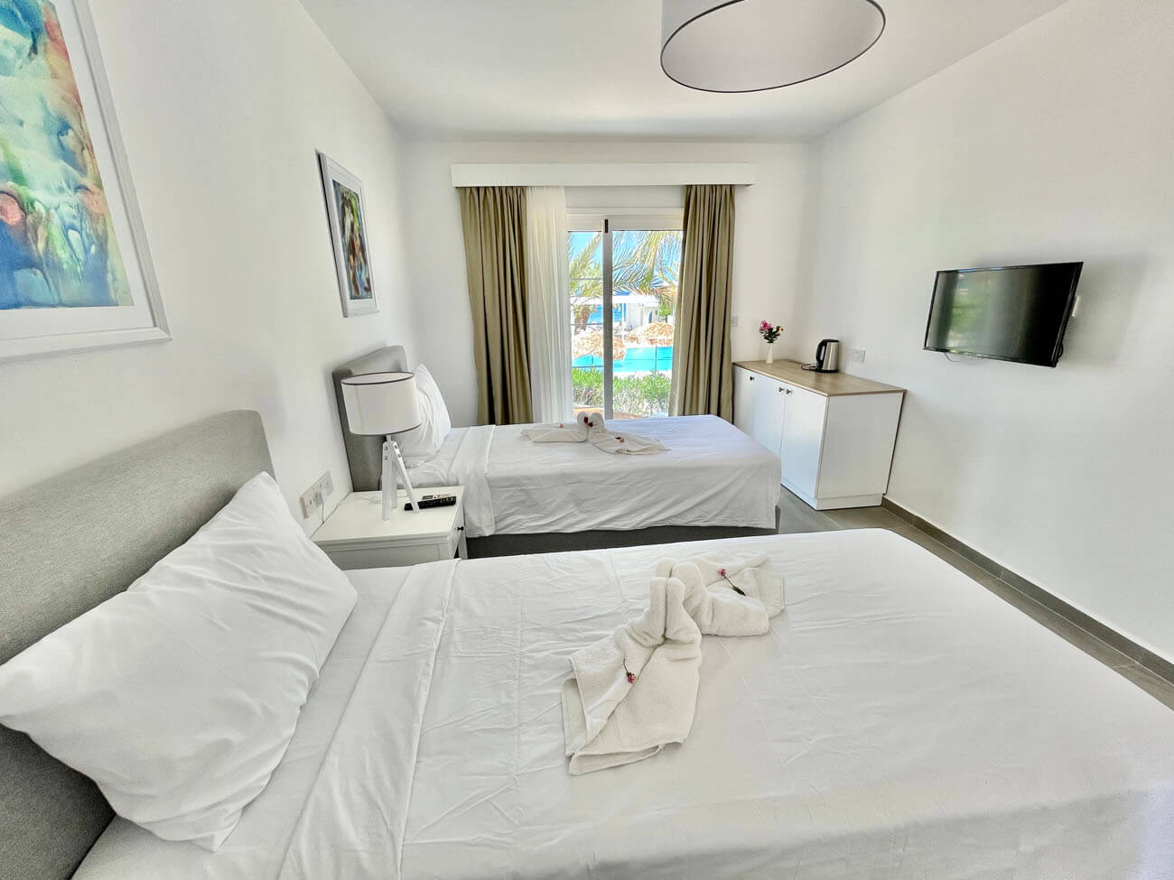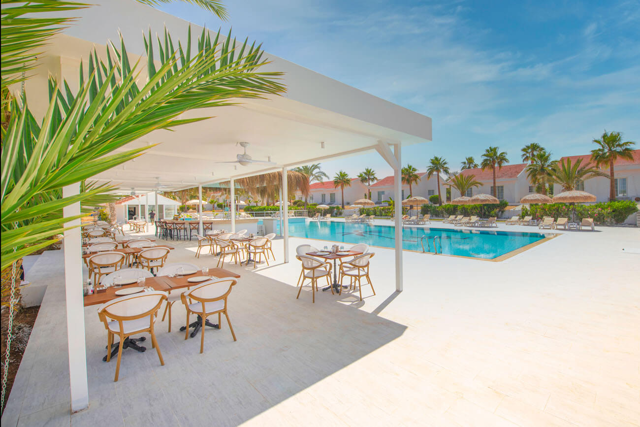 Being situated on the famous Long Beach, the resort’s beach is definitely one of the best in North Cyprus. Set in a sweeping curve of fine, golden sands that gently slope into the crystal waters of the Mediterranean Sea, it is a perfect place for paddling, swimming, or just sitting upon the shore, enjoying one of their beach bar cocktails, whilst the warm ripples of the sea caress your feet.