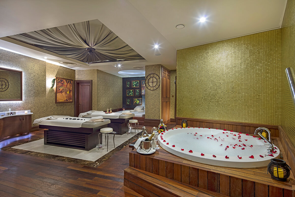 The Royal SPA boasting an area of 3500 square metres consists of divine and fanciful facilities including a stylish sauna, steam room, salt room, indoor pool, fun pool with Jacuzzi as well as an impressive fitness centre and Spa café. Complimented by the most exclusive Far East and classic body and skin care treatments, carried out by professional and experienced therapists, guests are honoured with a true oasis of tranquillity and renewal.