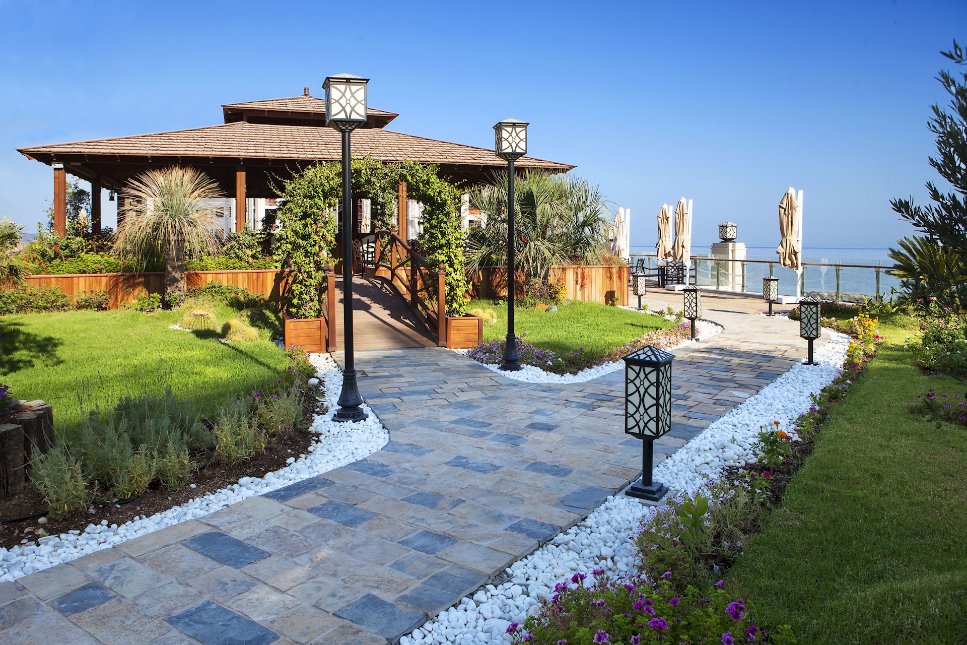 The Merit Royal benefits from its own private beach. It’s incredibly beautiful sandy beach cove is sheltered and enticing, blessed with a lovely cooling sea breeze. Cradled by the rocky coastline behind, it is said to be the birthplace of the wind god Zephyros according to Greek mythology. There is the privilege of an exclusive jetty, with stylish sun loungers to enjoy being sun kissed whilst floating above the crystal blue waters. Beautifully designed, exotic kabanas are also graciously provided, offering the ultimate regal experience (booking is advisable).