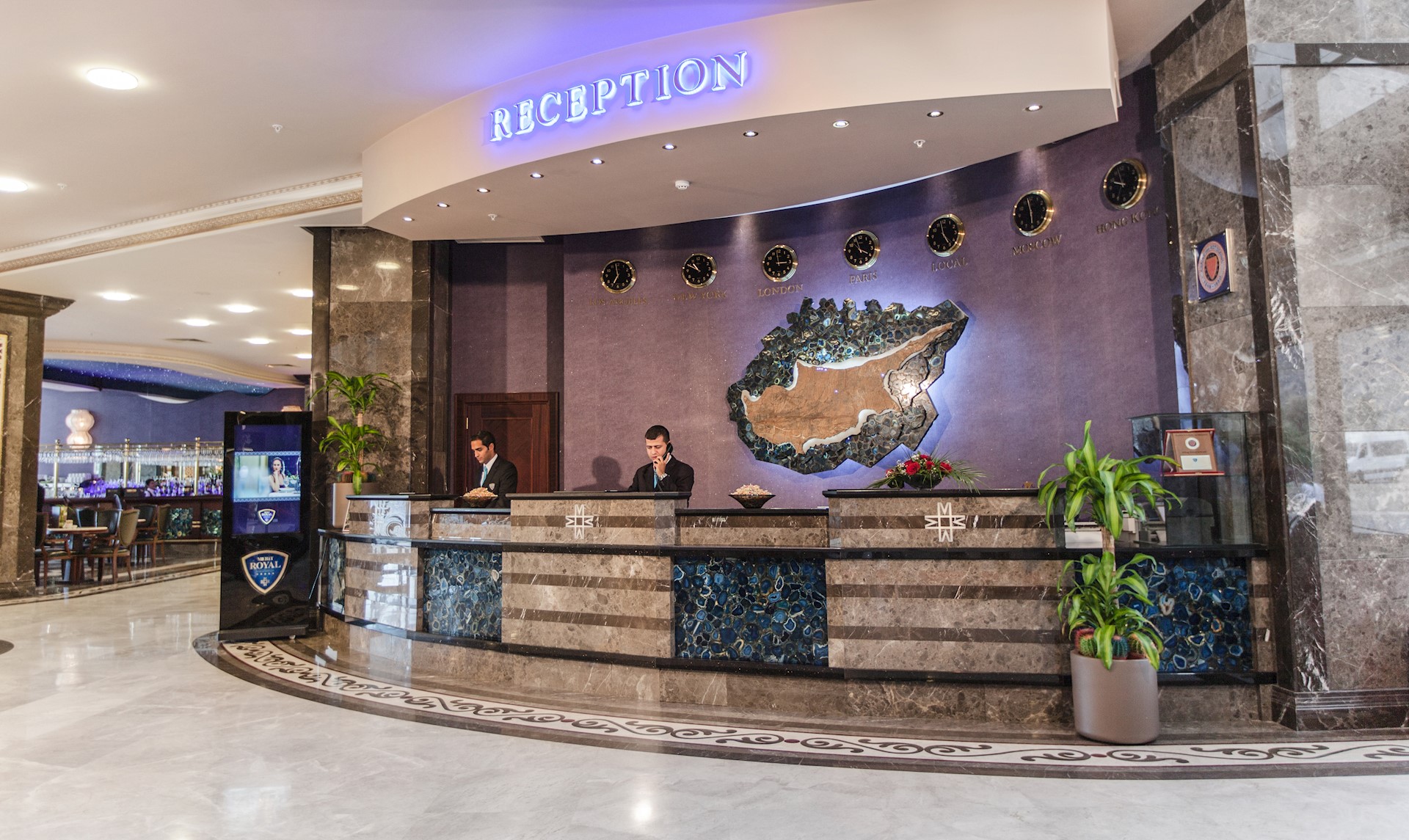 A gourmet breakfast, lunch and dinner are served in the Royal Restaurant, where service goes beyond expectations and your selection can be cooked and served to personal taste. Bella Merit offers a delicious variety of distinguished Italian cuisine and The Blue Sea Restaurant a sumptuous selection of fancy Lebanese dishes. The Merit Royal’s impressive bars include The Captain's Lounge, The Royal Baris and Dionysos Wine House. The Lobby Bar offers hot beverages, traditional night soup, a splendid chocolate buffet and a variety of local spirits. Both The Viyana Café and The Spa Café make a wonderful alternative for drinks and snacks.