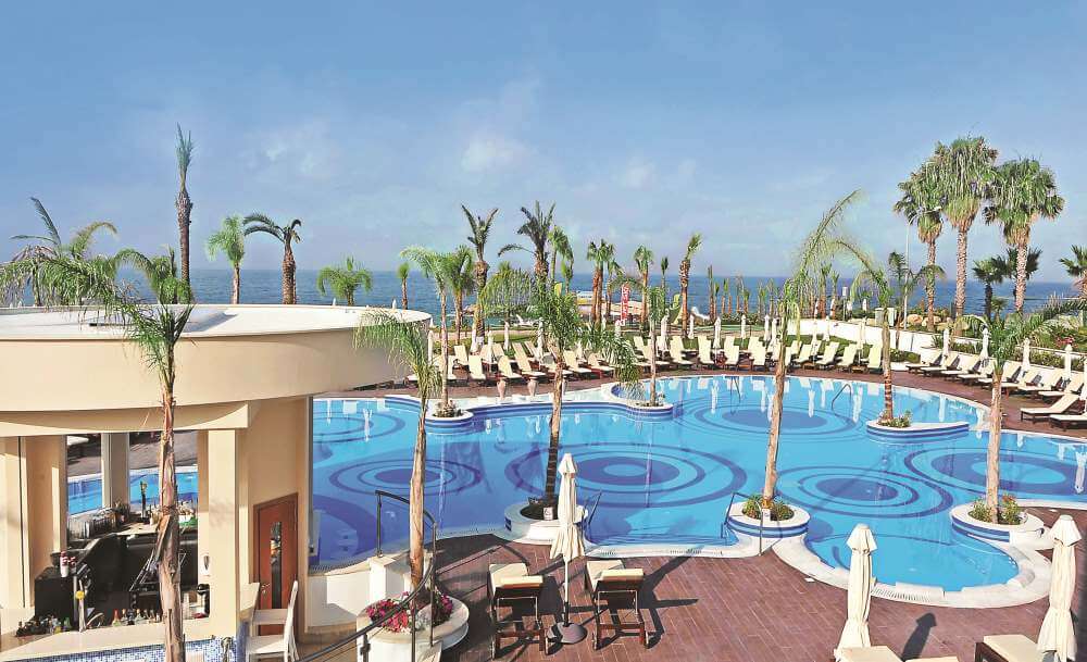 Located just moments from the sparkling waters of the Mediterranean, this superb 5-star resort certainly has that X-factor with its breathtaking vista and wealth of amenities that will undoubtedly keep all members of the family entertained. Starting with the hotel's large and lavish pools surrounded by atmospheric gardens featuring tall palm trees, including a kids' pool with water slides, all types of guests are truly in for a treat with the opportunity of a magnificent swim. Flanked by spacious sun decks and plentiful sun loungers, the beautiful free-form swimming pools are a watery heaven in which to relax and soak up the warmth of the Mediterranean sunshine.