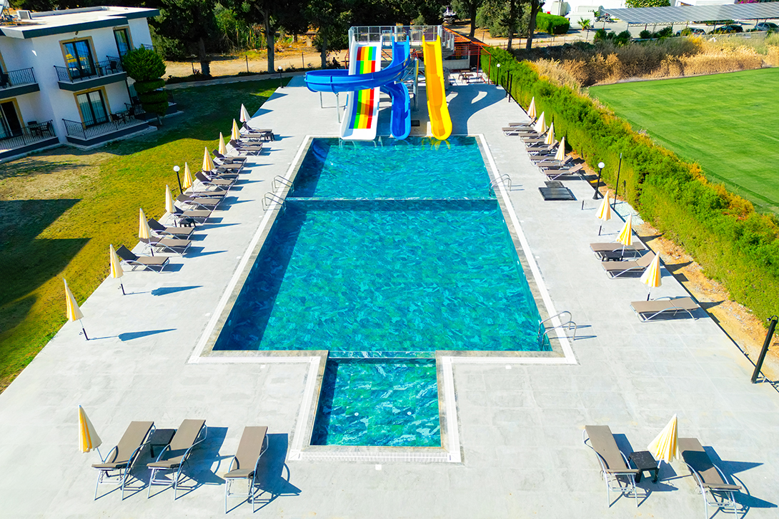 It’s really easy to get a bus from here if you want to venture out as the bus stop is on your right hand side as soon as you hit the main road. If you fancy a bite to eat, The Silver Rocks restaurant, only a 2 minute ride (towards Kyrenia) is a huge favourite in this area. Whether it’s just a coffee, drink at the bar or a fantastic meal looking over the coast you’re after, this restaurant really is the perfect choice. The Wild Duck is another great place,that makes a nice stop for lunch (about a ten minute walk from the hotel towards Karsiyaka), It is also great for children with its small park outside and local animals to enjoy. The Calamari & Blue Song on the popular Lapta Strip, no more than a 5 minute ride away. For a more active beach day, Suna’s Beach Club, on the way towards Kyrenia, features a striking jetty, plenty of sunbeds, excellent dining, and a variety of water sports, from jet skiing to paddleboarding.