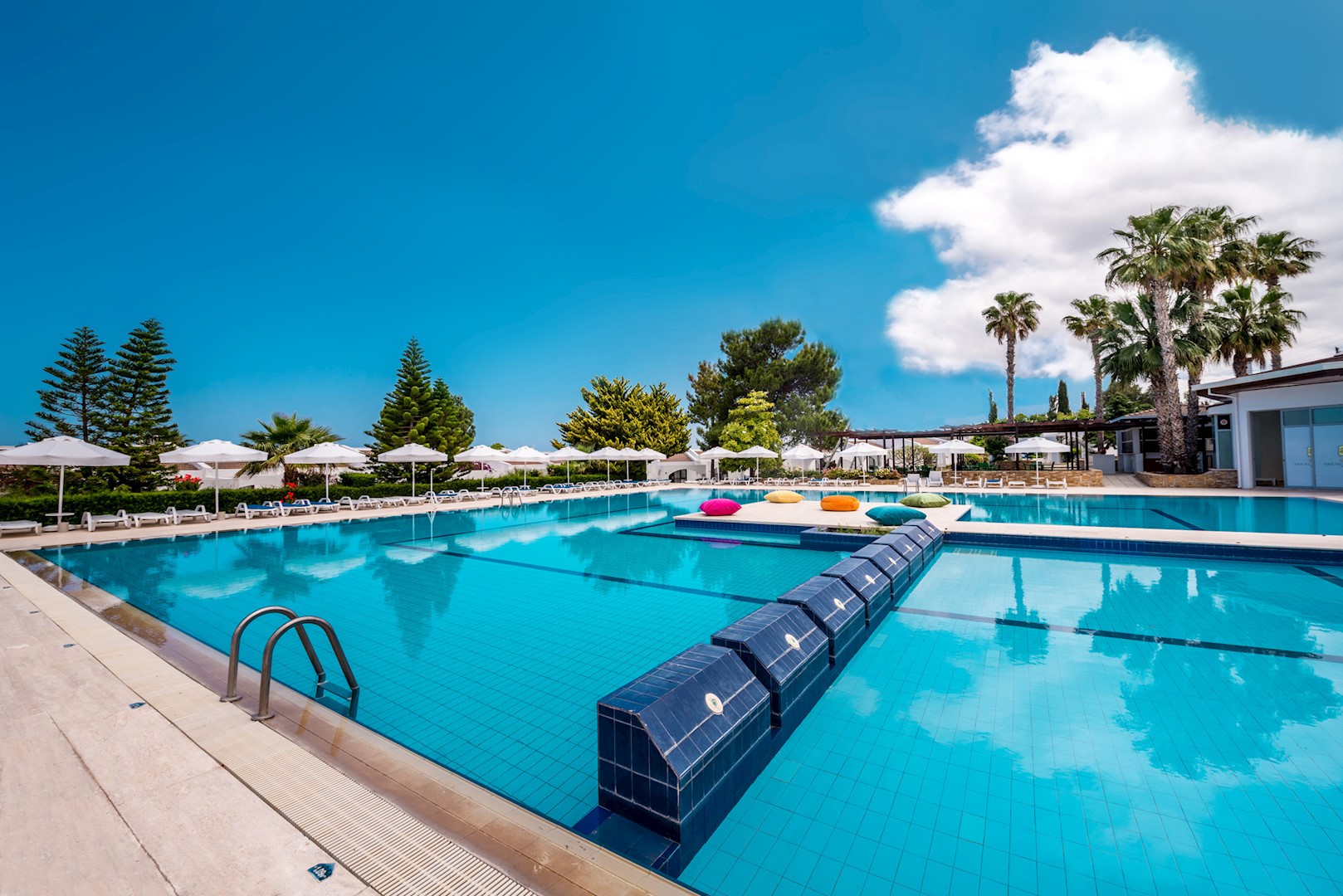 The Olive Tree Hotel benefits from a large, well designed swimming pool complete with separate areas allowing parents to swim and paddle with their little ones. It also offers lots of terrace space, surrounded by sun loungers and parasols as well as that all important pool bar! The hotel also provides a revitilising heated indoor pool, which allows guests to stroll to the outdoor pool through its convenient and attractive sliding doors.